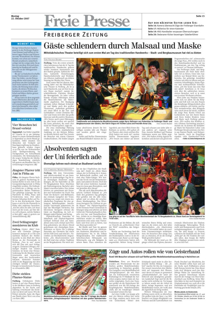 2 Schlagzeuger in Alter Mensa (22.10.07) Quelle: Freie Presse Archiv – Lokalausgabe 22.10.2007 22.10.07