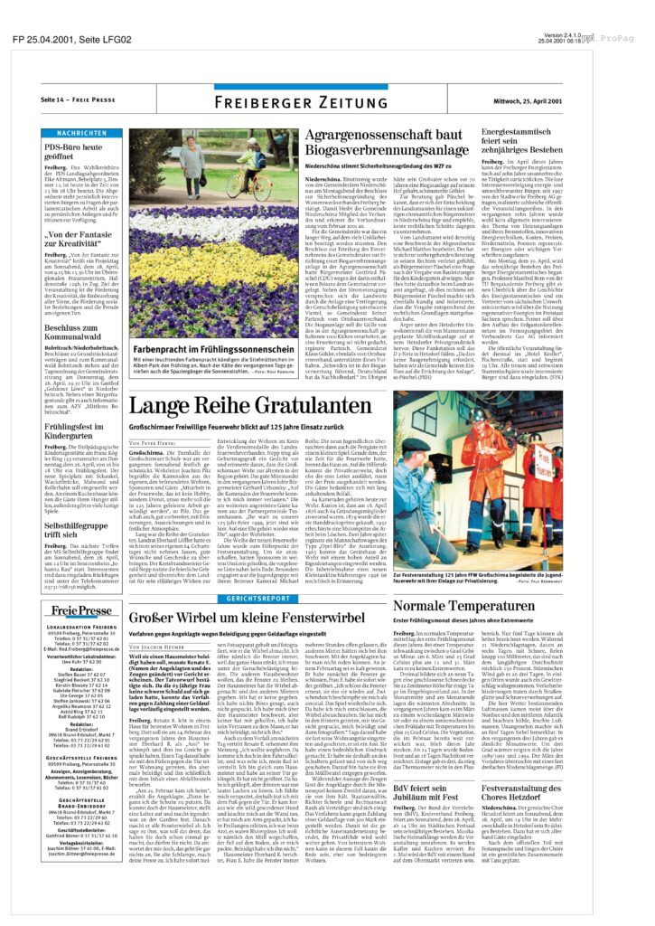 125 Jahre Freiwillige Feuerwehr (25.04.01) Quelle: Freie Presse Archiv – Lokalausgabe 25.04.2001 25.04.01