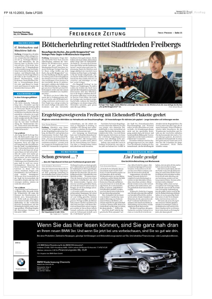 Buchvorstellung und Briefmarkenbörse (18.10.03) Quelle: Freie Presse Archiv – Lokalausgabe 18.10.2003 18.10.03