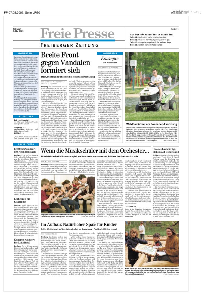 Musikschule spielt mit Philharmonie (07.05.03) Quelle: Freie Presse Archiv – Lokalausgabe 07.05.2003 07.05.03