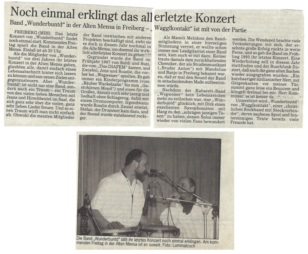 Konzert WunderbunTd und Wagglkontakt (09.06.95) 09.06.95 20:00 Uhr– 10.06.95 01:00 UhrBands / GruppenGründung Freiberger Rock e.V.ZeitungsartikelGründung Freiberger Rock e.V.